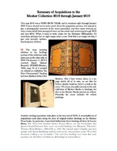 Summary of Acquisitions to the Mosher Collection 2018 through January 2019